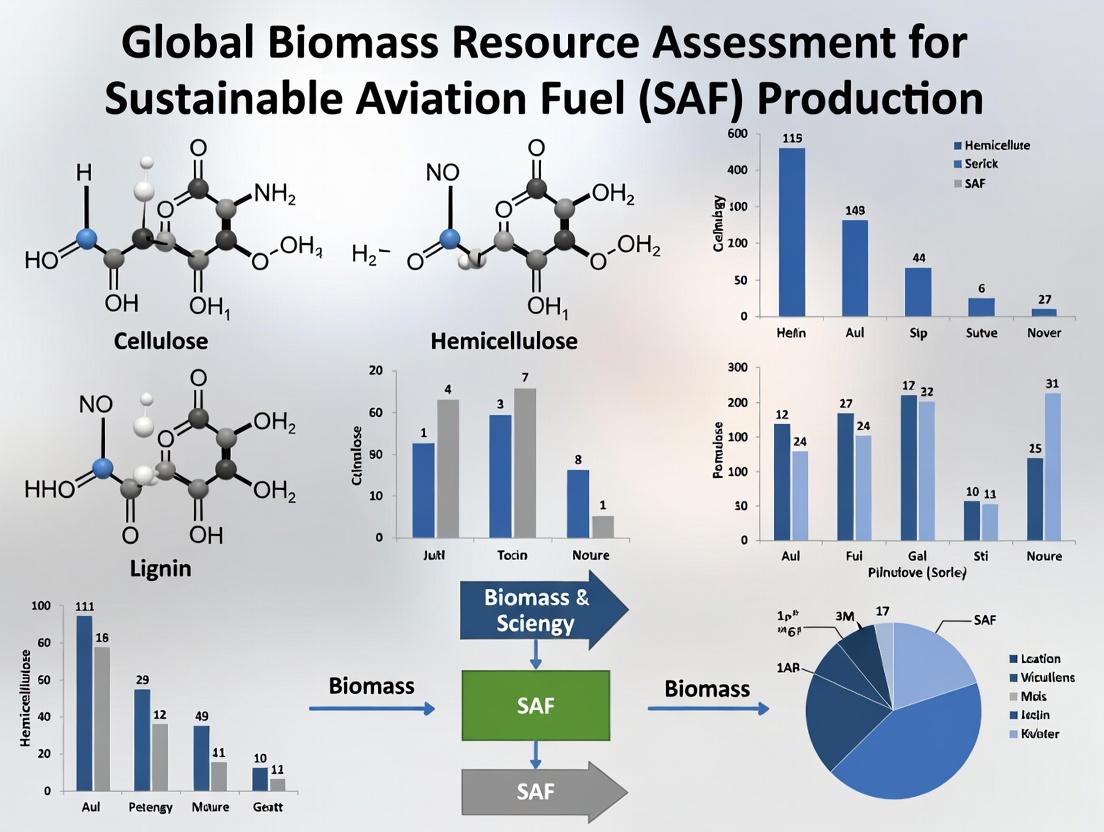 This article provides a systematic global assessment of biomass resources with potential for Sustainable Aviation Fuel (SAF) production. It explores the geographical distribution, availability, and inherent properties of key feedstocks, including agricultural residues, energy crops, forestry waste, and emerging sources like algae. The content details advanced methodologies for resource quantification, techno-economic analysis, and lifecycle assessment. It further addresses critical challenges in feedstock logistics, conversion compatibility, and sustainability optimization. By comparing regional potentials, technological pathways, and environmental impacts, this assessment offers researchers and biofuel developers a data-driven framework to identify viable, scalable, and sustainable feedstock strategies for decarbonizing the aviation sector.