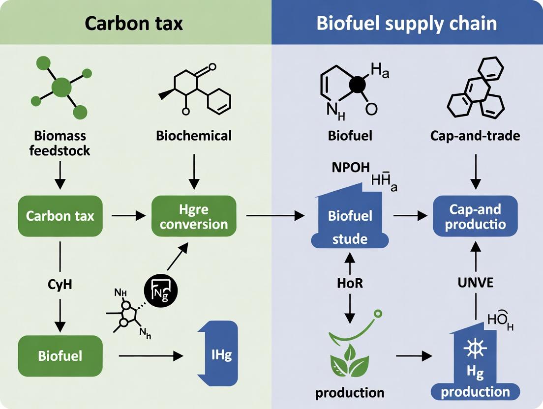 This article provides a comprehensive analysis of carbon pricing mechanisms—specifically carbon taxes and cap-and-trade systems—within the biofuel supply chain, tailored for researchers and drug development professionals engaged in sustainable biomaterial...